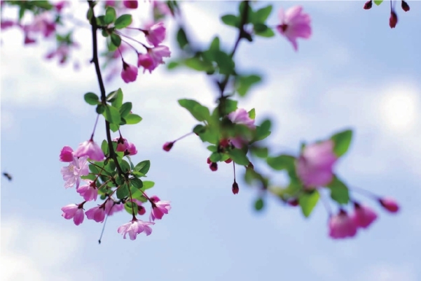 海棠花,自古以来就是雅俗共赏的名花,素有“花中神仙”“花中贵妃”之称,海棠素有国艳之誉,经常出现在皇家园林中,与玉兰、牡丹、桂花相配,形成玉棠富贵的意境。著名诗人陆游用“虽艳无俗姿,太皇真富贵”来形容海棠的艳美高雅。