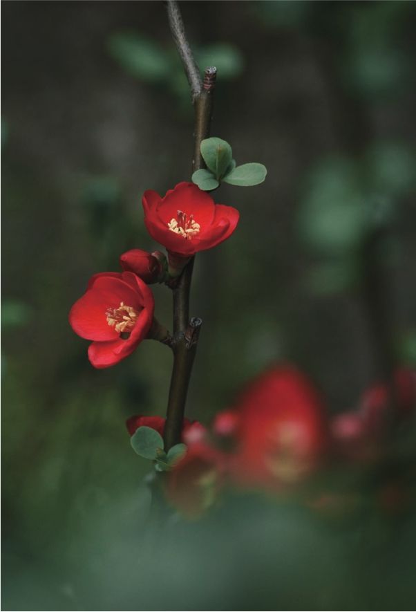 这一节我们用日本木瓜海棠,来教大家如何选枝、折枝,这是中国古代为文人墨客们所喜好的一种寄情于植物的方式。在宋代,挑选一枝梅花插在胆瓶中,经常是书房案头的一道小景。