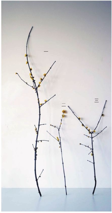 在北方人的眼里,蜡梅是稀罕之物,因为在花市里的蜡梅总来自遥远的南方,为了便于运输,腊梅花儿的造型总被砍得七零八落,早就失去了在自然中原有的姿态,没有飘逸的、遒劲的枝条,只有各种“Y”字形的枝杈,本节依然借用蜡梅这个主题来让大家继续练习关于枝条的取舍,因为在很多时候,家中案头只要一枝花就能体现出自己的心情和这个时节的一点乐趣。