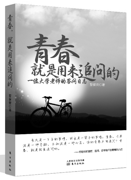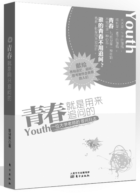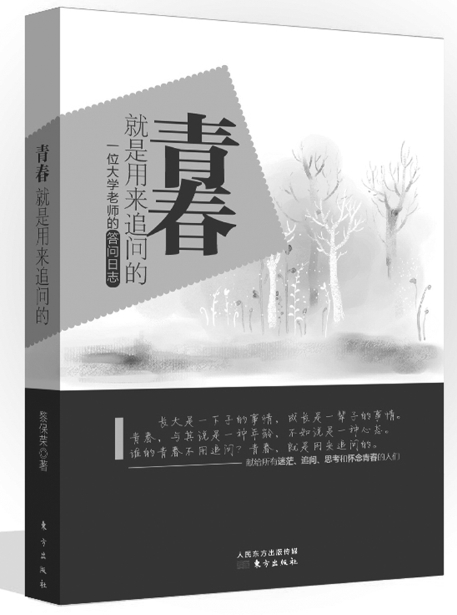 广告语即本书是国内第一本大学师生交流的日志书稿,历时三年而就,主要内容是师生之间的答问交流,问题直接或间接来自大学生,回答来自他们的老师。除此之外,本书书名、前勒口照片、广告语、封面等也是老师经过学生的投票或建议之后决定的。本书是一本真正的师生交流之书,可谓新时代的大学“论语”。本书更是一本有思想、有关怀的解惑之书,适合大学生、年轻人以及所有迷茫、追问、思考和怀念青春的人们阅读。